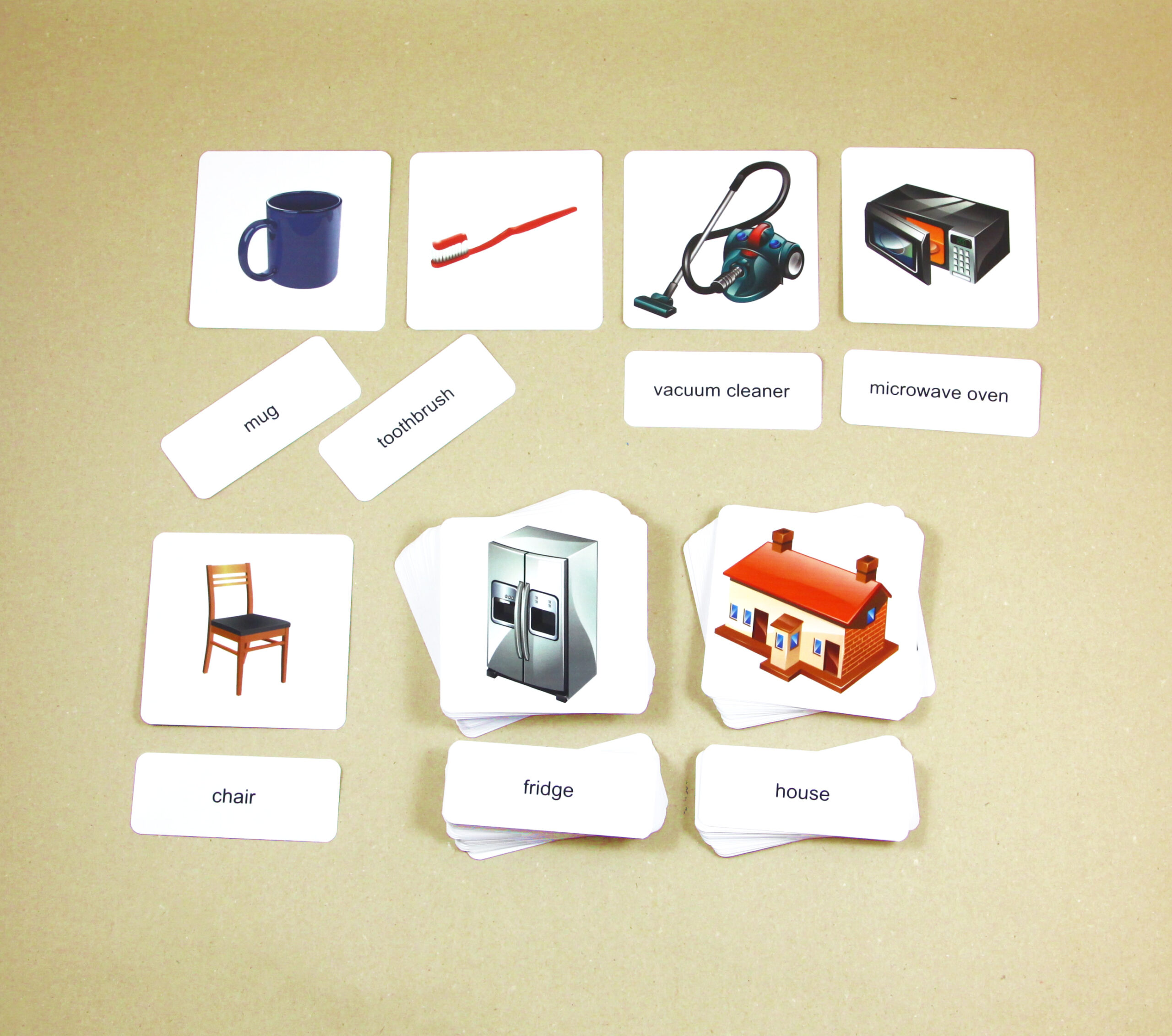 Úkolem dětí je přikládat k základním kartám s obrázkem malé karty s textem. Po otočení základní karty si mohou samy zkontrolovat správnost řešení. Na rubové straně základní karty je anglický výraz i jeho český ekvivalent.