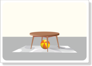 Na 37 obrázkových kartách děti popisují polohu jednoho předmětu (míč).